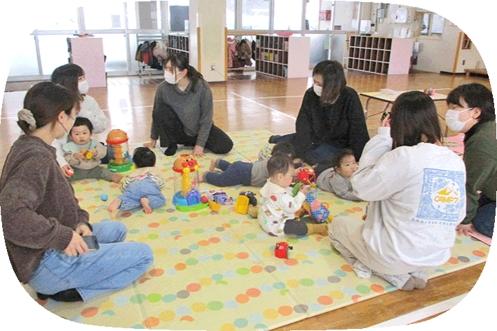 子育てをしていて楽しいこと、つらいこと、困っていること、不安に思っていること…など。子どもと遊びながら、他の保護者の方と楽しく話してみましょう。